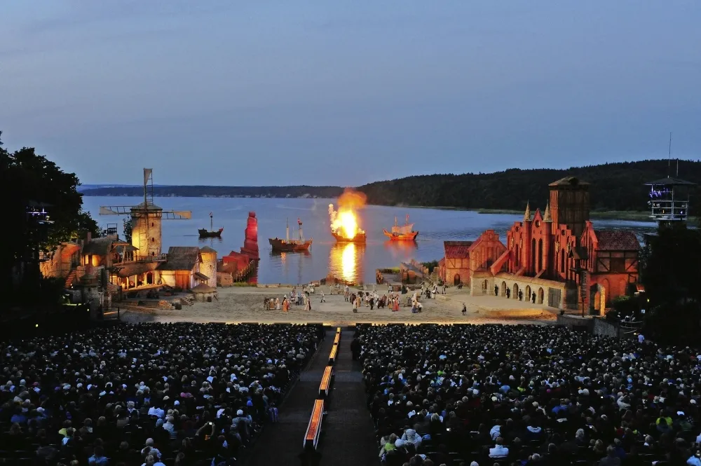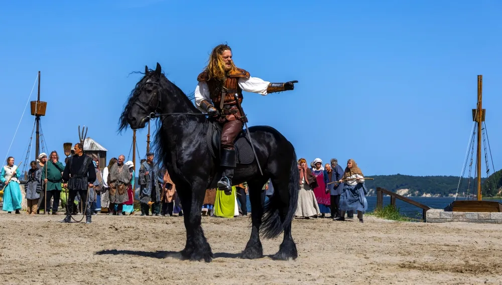 Erleben Sie auf der einzigartigen Naturbühne Ralswiek - eine der schönsten Freilichtbühnen Europas - die Abenteuer des legendären Seeräubers Klaus Störtebeker. Ein Theaterstück mit über 150 Mitwirkenden, 4 Schiffen, 30 Pferden, Spezialeffekten und vielem mehr. Seien Sie dabei, wenn der legendäre Pirat Klaus Störtebeker seine Segel setzt und gegen Pfeffersäcke und Unrecht kämpft. Gekrönt wird das Ganze von einem Feuerwerk über dem "Großen Jasmunder Bodden". Ein unvergessliches Erlebnis bei Ihrem Besuch der Insel Rügen.