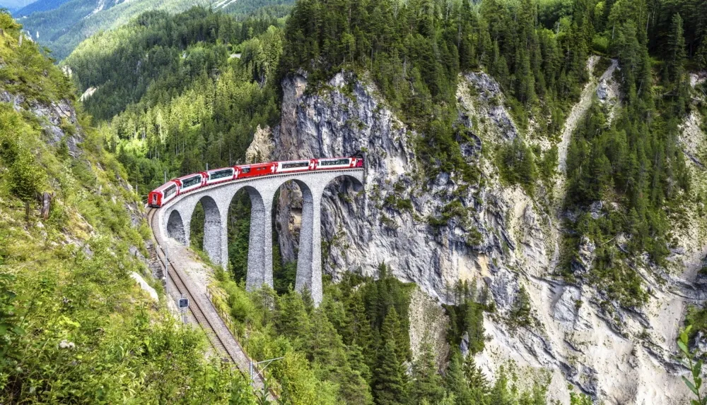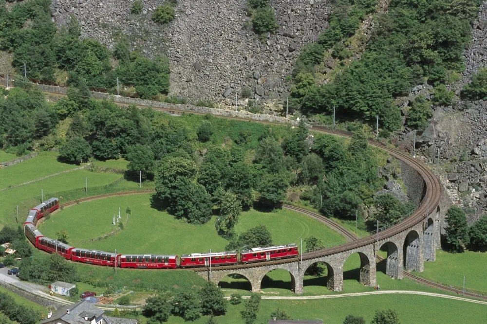 Sie erleben eine fantastische Zugfahrt durch das UNESCO-Welterbe "Rhätische Bahn in der Landschaft Albula/ Bernina". Die absoluten Höhepunkte dieser Bahnstrecke sind dabei die Fahrten über das 136 Meter lange Landwasserviadukt sowie das berühmte Kreisviadukt bei Brusio.