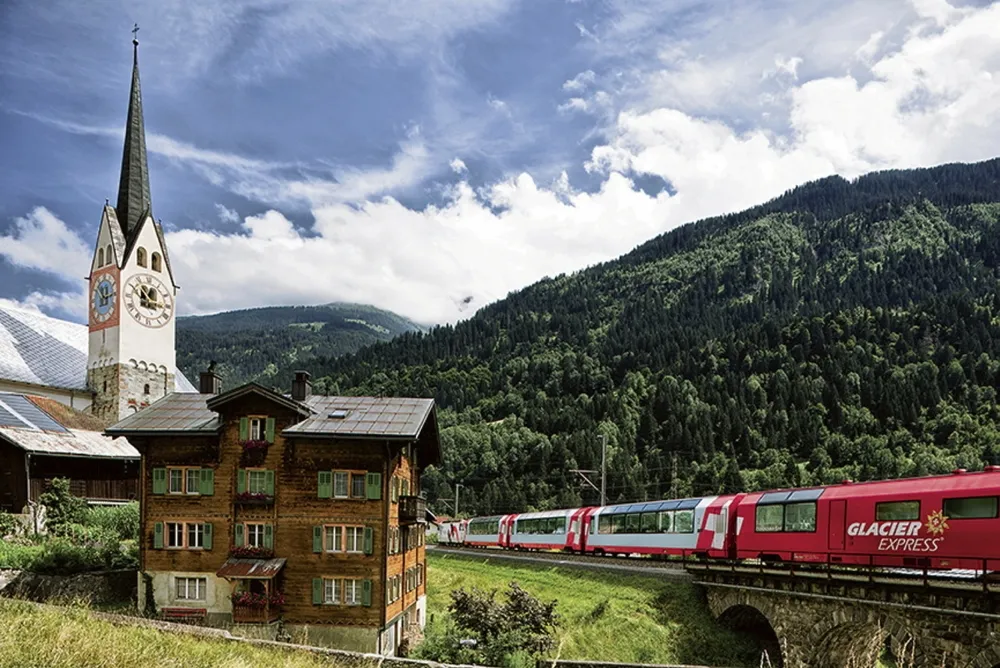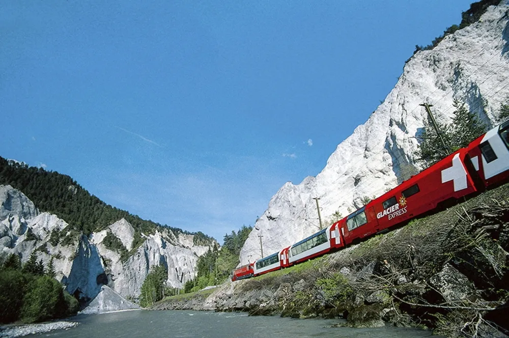 Nicht weniger schön ist die Fahrt mit dem Glacier Express auf dem besonders idyllischen Streckenabschnitt zwischen Chur und Brig. Im exklusiven Panoramawagen genießen Sie eine herrliche Rundumsicht auf die Berglandschaft und die berühmte Rheinschlucht bei Reichenau.